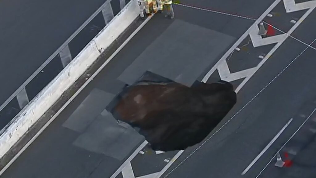 A cratera apareceu em uma parte sob a responsabilidade da concessionária AutoBAn, a aproximadamente 400 metros da Ponte Atílio Fontana, na entrada da pista local para a central.