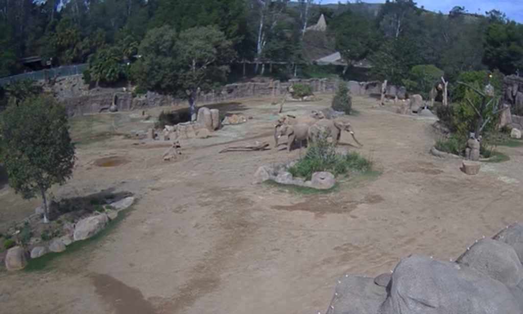 Um vídeo do zoológico de San Diego, nos Estados Unidos, mostra a reação dos elefantes africanos ao terremoto desta segunda-feira (14) no sul da Califórnia.