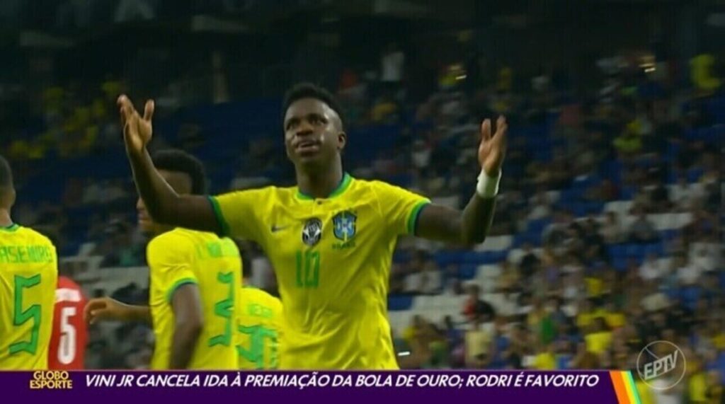 Ex-companheiros de Flamengo, o lateral do Internacional, Renê, foi ao CT do clube, em Porto Alegre, com a camisa do atacante. Nas suas redes sociais, o jogador, junto com o meio-campo Thiago Maia, postaram fotos com a camiseta do Real Madrid e com a mensagem: “Independente do resultado, somos todos Vini”. A publicação foi em alusão a polêmica ausência do brasileiro na premiação da Bola de Ouro 2024.