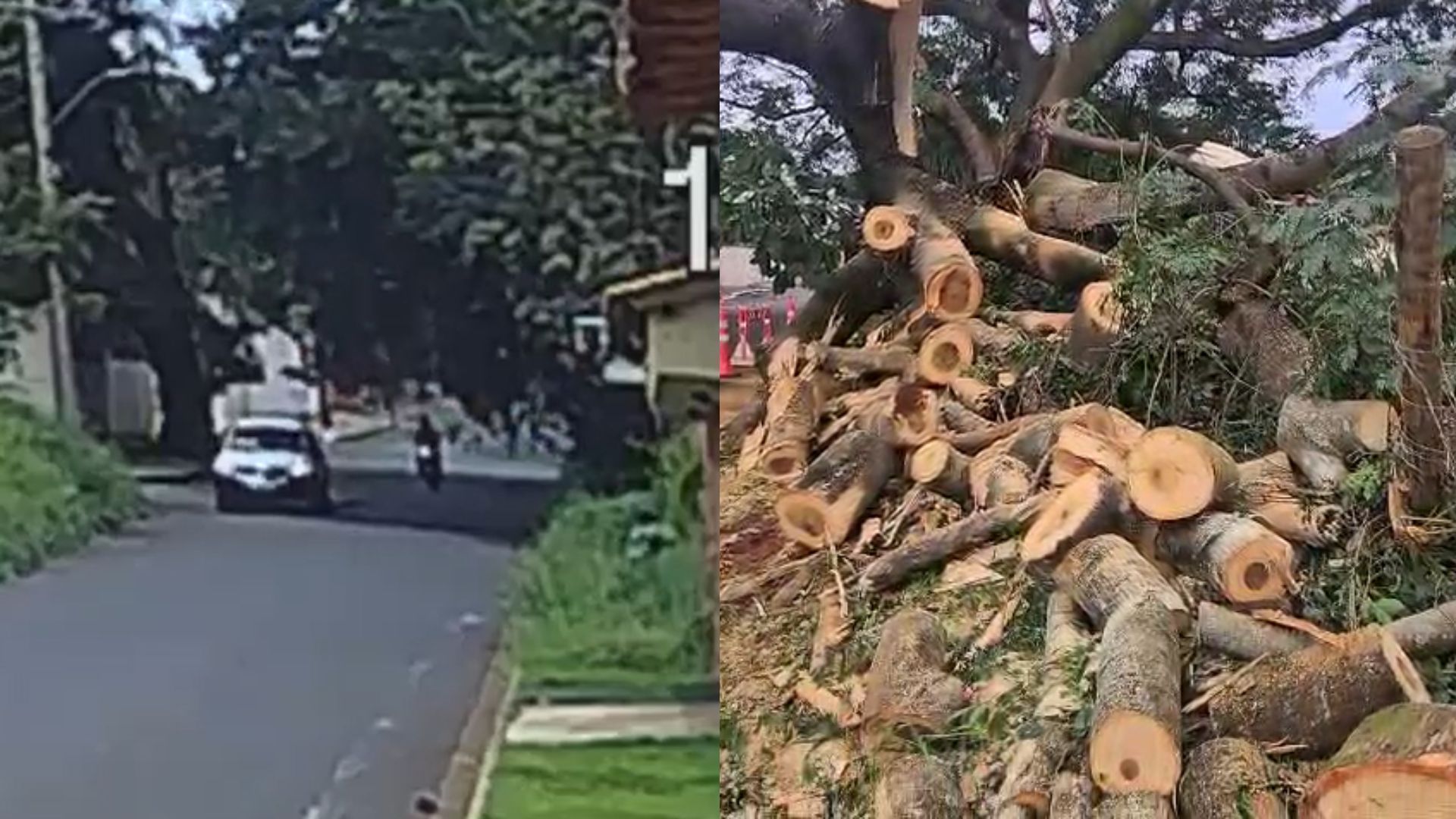 Um motociclista de 19 anos foi atingido por uma árvore de grande porte, enquanto trafegava pela Rua Aguapé, no bairro Chácaras Tubalina, em Uberlândia, Minas Ge...