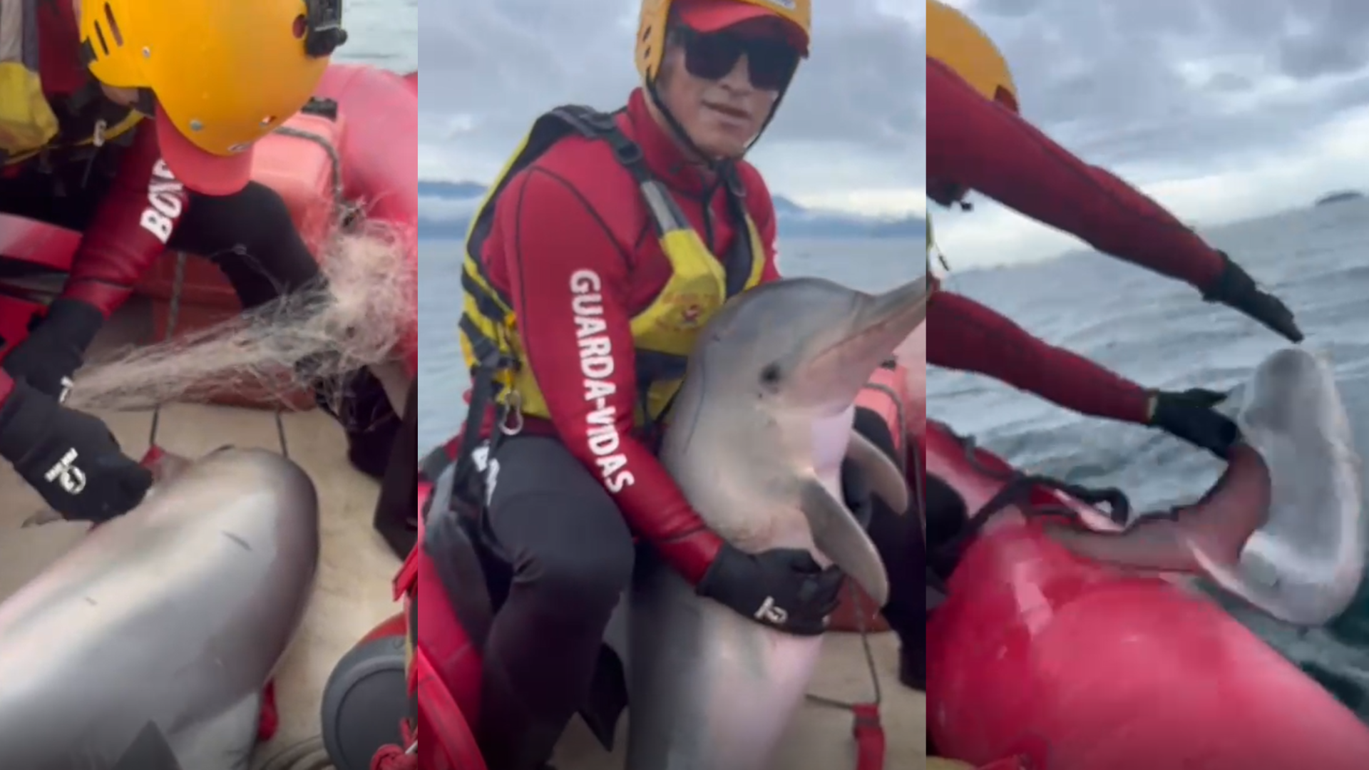 Um filhote de boto-cinza foi resgatado, nesta sexta-feira (31). após ficar preso em uma rede de pesca na costa Norte de Ubatuba, no litoral paulista.