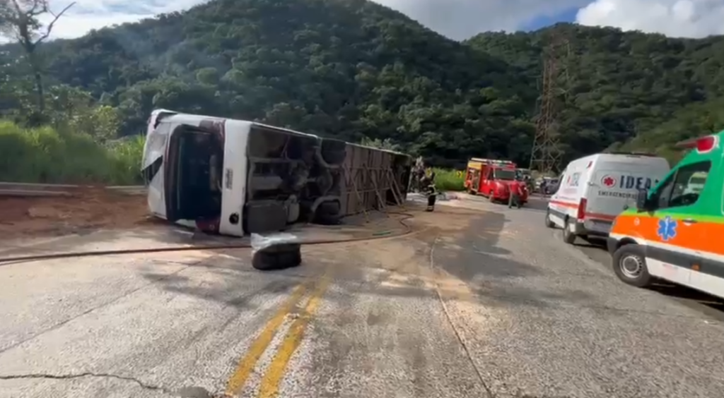 Um ônibus fretado com 46 passageiros, a maioria adolescentes, tombou na manhã deste domingo (26), na Serra Dona Francisca (SC-418), na altura de Joinville. Segundo o Corpo de Bombeiros, o veículo tinha como destino o parque temático Beto Carrero, em Penha.