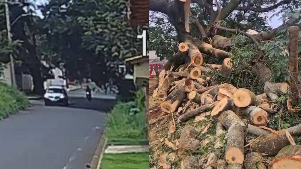 Um motociclista de 19 anos foi atingido por uma árvore de grande porte, enquanto trafegava pela Rua Aguapé, no bairro Chácaras Tubalina, em Uberlândia, Minas Gerais, na última sexta-feira (14). O acidente foi registrado por uma câmera de segurança.